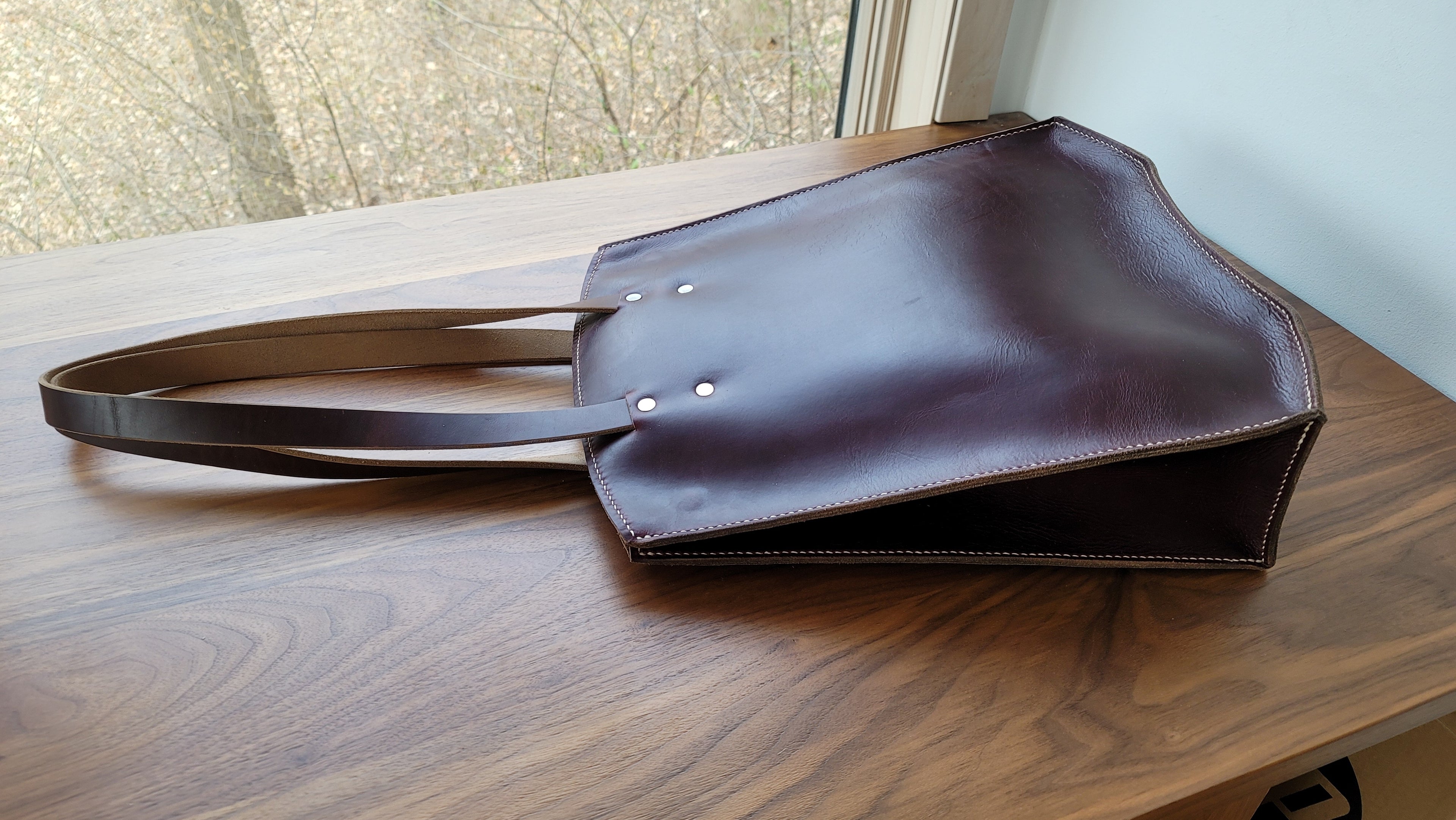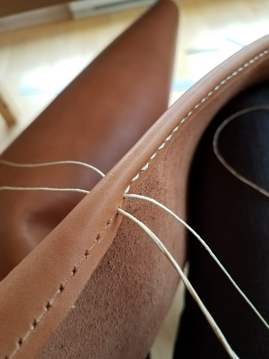vegetable-tanned leather, hand-waxed linen thread, and solid brass hardware,